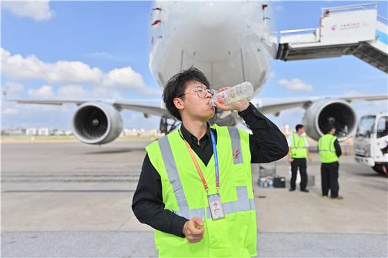 天氣炎熱,機務們喝水解渴