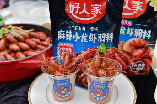 美味市集當(dāng)然少不了美味。專業(yè)大廚來到現(xiàn)場爆炒3款小龍蝦,麻辣小龍蝦、辣鹵小龍蝦、蒜蓉小龍蝦……數(shù)百斤小龍蝦每天供應(yīng),營造了“視”“聽”“嗅”“味”“觸”的五覺體驗,讓用戶嘗過癮,也將好人家調(diào)料的豐富與美味根植于心。