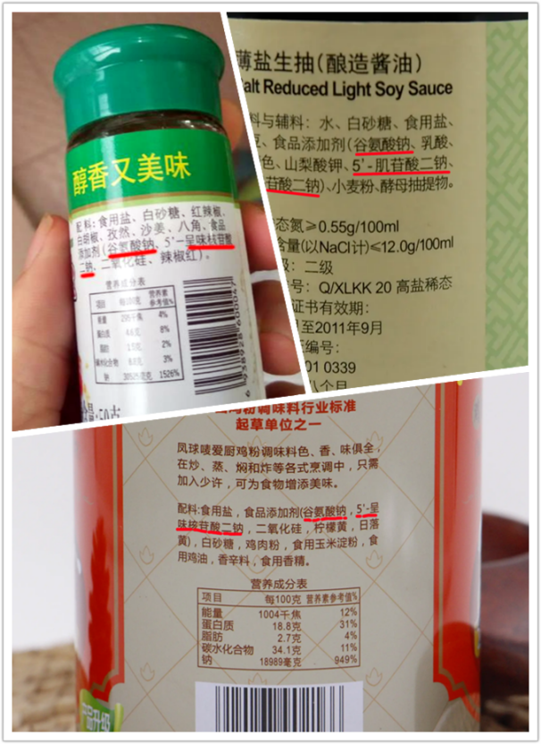 假如你稍微留意各種調(diào)味品的配料表,就會發(fā)現(xiàn)谷氨酸鈉和呈味核苷酸二鈉是出現(xiàn)頻率最高的增鮮劑,谷氨酸鈉就是我們常說的味精,而呈味核苷酸二鈉俗稱I+G。