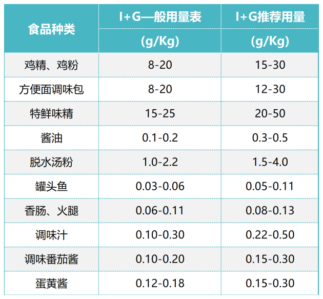 味精和I+G是互為依賴的增鮮劑,兩者合理并用時,可使菜肴鮮味躍增,達到味精無法達到的鮮味,我們稱之為“鮮味”的相乘效果。使用時,I+G添加量約為味精的2~5%,其增鮮效果可以提高3~6倍左右,而且對產(chǎn)品品質(zhì)有很大提升,使味覺明顯改善,甜、酸、苦、辣、鮮、香和咸味等更加濃郁而協(xié)調(diào),更接近天然食品的味道。