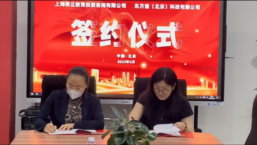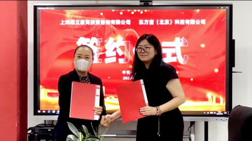 東方童(北京)科技有限公司文化傳媒事業(yè)部總經理尹健穎、上海昂立教育投資咨詢有限公司研學項目負責人金玫伶舉行簽約儀式