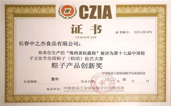 2023年4月19日,中之杰再次驚艷亮相中國(guó)粽子文化節(jié),一舉斬獲三項(xiàng)全國(guó)大獎(jiǎng)。中之杰的梅肉黑松露粽作為創(chuàng)新產(chǎn)品,從原料、工藝、口感、顏值等各個(gè)方面都受到行業(yè)專家推崇,同時(shí)斬獲全國(guó)(糕團(tuán))技藝大賽雙冠王——大賽最高獎(jiǎng)項(xiàng)“粽子產(chǎn)品特等獎(jiǎng)”和“粽子產(chǎn)品創(chuàng)新獎(jiǎng)”,中之杰海鹽芝士炸不爆元宵榮獲全國(guó)(糕團(tuán))技藝大賽最高獎(jiǎng)項(xiàng)“糕團(tuán)產(chǎn)品特等獎(jiǎng)”。