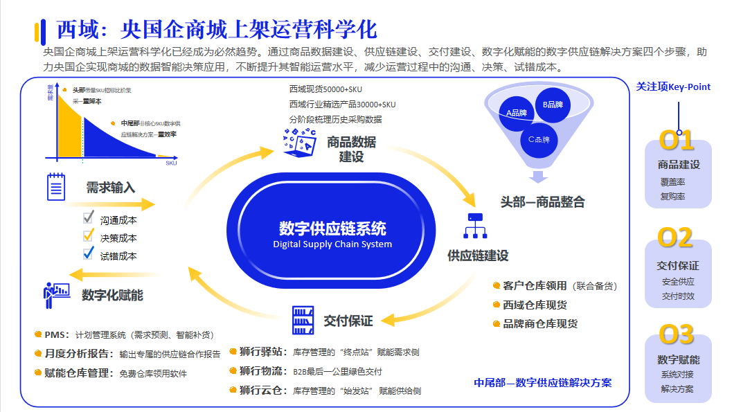 對于供應(yīng)商來說,為用戶提供供應(yīng)鏈服務(wù)是基礎(chǔ)能力,但供應(yīng)鏈的“精細化”運營才是考驗供應(yīng)商的核心能力。例如:西域依托平臺積累和沉淀大量的用戶、商品和交易數(shù)據(jù),提供精細化的數(shù)據(jù)、商品、庫存和交付的運營服務(wù),進行深度的數(shù)據(jù)治理,幫助用戶精選優(yōu)質(zhì)商品和智能備貨。