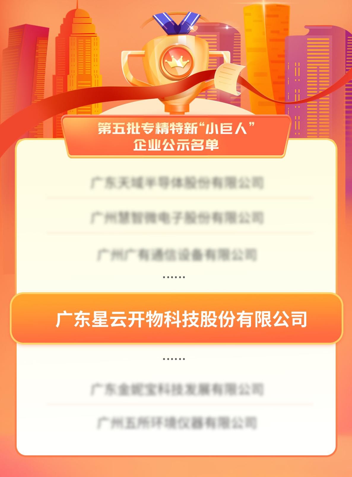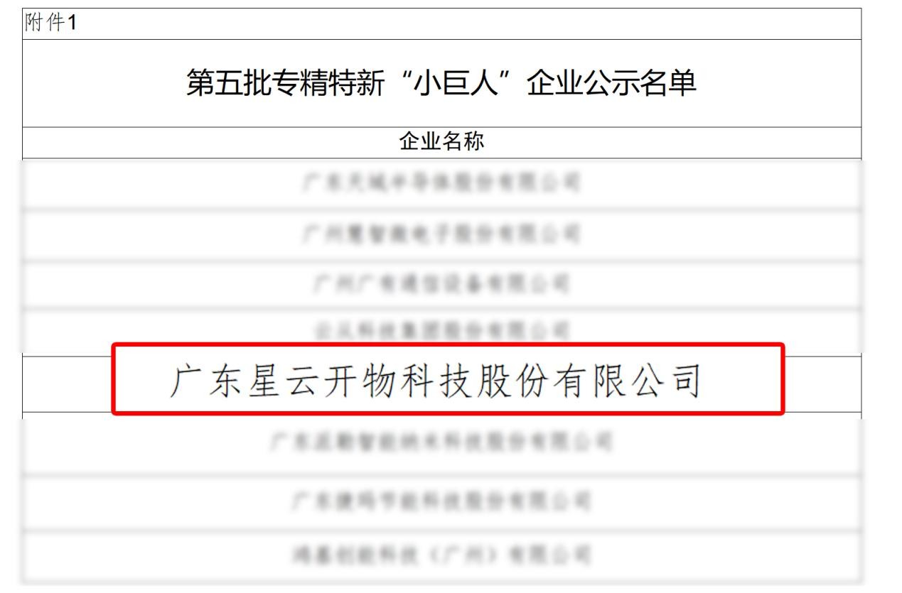 ? ? 7月14日,國家工信部發(fā)布了《關(guān)于廣東省第五批專精特新“小巨人”企業(yè)和第二批專精特新“小巨人”復(fù)核通過企業(yè)名單的公示》,廣東「星云開物」科技股份有限公司以優(yōu)異的綜合實(shí)力成功入選,榮列2023年國家級第五批專精特新“小巨人”企業(yè)公示名單。