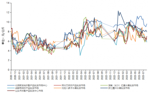 圖4 重點(diǎn)批發(fā)市場臍橙價格走勢