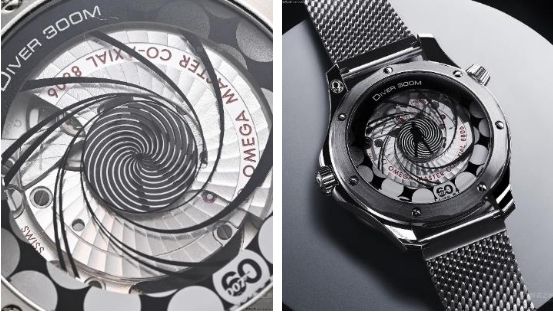 這種通過秒針聯(lián)動的功能,歐米茄并不是第一次使用。在此之前,2020年推出歐米茄超霸系列“史努比獎”50周年紀(jì)念腕表(第三代史努比),手表背面就是靠計時秒針(計時表的中央計時秒針)聯(lián)動,帶動背面的史努比飛船,沿著底蓋外圈,繞月飛行。同時,正常的走時小秒針,會帶動表背的地球,持續(xù)轉(zhuǎn)動?,F(xiàn)在,海馬系列300米潛水表詹姆斯·邦德60周年紀(jì)念版精鋼款將秒針聯(lián)動呈現(xiàn)出“動態(tài)效果”,其中蘊含的創(chuàng)意令人嘆為觀止。