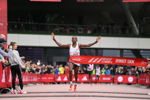 Kibiwott Kandie和Sabastian Sawe在男子10公里比賽中再次正面交鋒,上演了一場精彩酣戰(zhàn),最終Sabastian Sawe成功戰(zhàn)勝了世界紀(jì)錄保持者Kibiwott Kandie,將他的個人最好成績縮短了5秒,以26:49奪得冠軍——位列世界歷史上第五快的男子10公里成績。