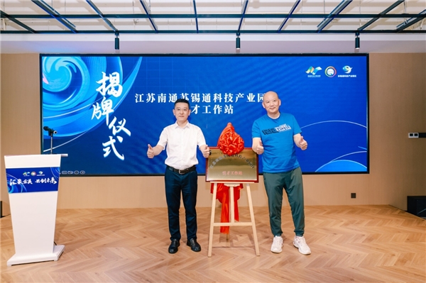 王洪波與袁岳為園區(qū)引才工作站揭牌。