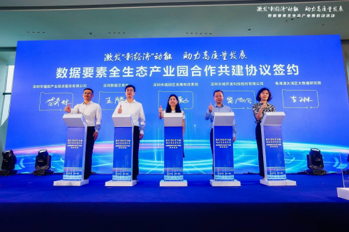 在福田區(qū)發(fā)展和改革局、深圳長(zhǎng)城開發(fā)科技股份有限公司、深圳數(shù)據(jù)交易所、粵港澳大灣區(qū)大數(shù)據(jù)研究院、深圳市福田產(chǎn)業(yè)投資服務(wù)有限公司五方協(xié)同下,集資源,搭平臺(tái),顯優(yōu)勢(shì),謀求協(xié)作發(fā)展互惠共贏,攜手推進(jìn)數(shù)據(jù)要素全生態(tài)產(chǎn)業(yè)園建設(shè)。