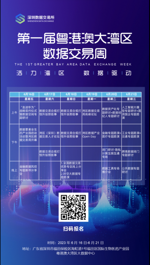 深圳數(shù)據(jù)交易所作為數(shù)據(jù)交易市場(chǎng)的先行者與推動(dòng)者,積極聯(lián)通線上線下,共同打造灣區(qū)數(shù)據(jù)交易盛會(huì),不斷探索數(shù)據(jù)交易發(fā)展的創(chuàng)新思路。為激發(fā)數(shù)據(jù)交易市場(chǎng)活力,在市發(fā)展改革委指導(dǎo)下,深圳數(shù)據(jù)交易所聯(lián)合深圳國(guó)家高技術(shù)產(chǎn)業(yè)創(chuàng)新中心將于2023年6月16日-21日舉辦“第一屆粵港澳大灣區(qū)數(shù)據(jù)交易周”系列活動(dòng),圍繞金融、醫(yī)療、工業(yè)、交通等行業(yè)舉辦近20場(chǎng)專題路演、產(chǎn)品宣講、交易撮合、企業(yè)參觀等活動(dòng)。