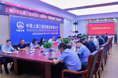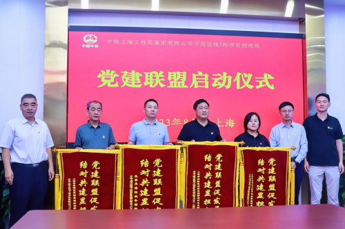 啟動儀式現(xiàn)場,青浦區(qū)朱家角鎮(zhèn)黨委委員王磊,中鐵上海工程局集團有限公司城建分公司黨委副書記、工會主席張文續(xù),上海申鐵投資有限公司項目經(jīng)理何喬石現(xiàn)場為各聯(lián)建單位授予“黨建聯(lián)盟促發(fā)展,結(jié)對共建顯擔(dān)當(dāng)”錦旗,并共同見證上海示范區(qū)線5標(biāo)項目部與各單位締結(jié)《黨建聯(lián)建協(xié)議書》。據(jù)了解,聯(lián)盟成立后,各聯(lián)建單位將相互交流黨建工作經(jīng)驗,共同開展黨建共建活動,通過推進區(qū)域化黨建,盤活黨組織力量資源,實現(xiàn)黨建與生產(chǎn)深度融合,以高質(zhì)量黨建引領(lǐng)高質(zhì)量發(fā)展。