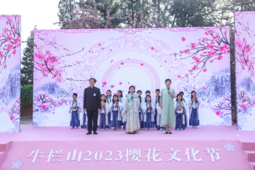 開幕式在孩子們的朗朗讀書聲中緩緩拉開,一群少年身著漢服在朝陽中誦讀《少年中國說》、《水調(diào)歌頭》。牛欄山地區(qū)黨委書記姜惠琴在致辭時(shí)表示:“以櫻花為媒,舉辦此次櫻花節(jié)活動(dòng),以沉浸式場(chǎng)景演出,融入全民閱讀,文明創(chuàng)城等活動(dòng),相信能夠給大家?guī)硪粓?chǎng)文化盛宴,也將為順義區(qū)打造一個(gè)更加亮麗、持久的文化旅游城市名片?!?月23日,將迎來第28個(gè)世界讀書日。牛欄山作為全國文明鎮(zhèn),姜惠琴在此倡導(dǎo)大家多讀書,讀好書,以書為媒,為文明創(chuàng)城創(chuàng)建賦能添彩,讓全民閱讀之氣彌漫,讓文明在全社會(huì)蔚然成風(fēng)。