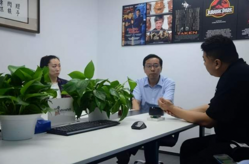 中國電影進(jìn)出口有限公司總經(jīng)理劉春先生認(rèn)真聽取閃梭傳媒總裁南光(James Nan)先生匯報相關(guān)工作