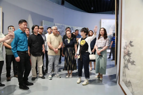 開展當(dāng)日上午,山東美術(shù)館與內(nèi)蒙古文藝界領(lǐng)導(dǎo)嘉賓、藝術(shù)家一同參觀展覽。隨后,以“黃河故事”為主題的展覽研討會(huì)順利舉辦。