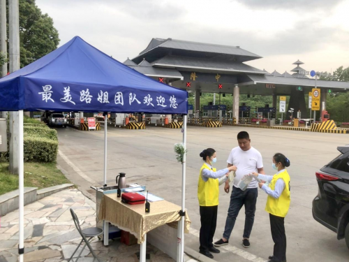 收費(fèi)廣場的便民服務(wù)臺前,桌子上擺滿了高速地圖、住宿推薦、旅游攻略等各式各樣的宣傳手冊,緊急醫(yī)藥箱、簡易維修工具等一應(yīng)俱全。“你們收費(fèi)站附近有修車的嗎?我的車半路出了點(diǎn)問題,現(xiàn)在得趕緊找個修車的地方。”一位剛下道的貨車司機(jī)搖下車窗,焦急地詢問道。“您先別著急,右邊大概100米左右就有一家汽修店,不遠(yuǎn)的。天熱了給您拿瓶水喝,解解渴?!敝驹刚咭贿吇貞?yīng)著,一邊為司機(jī)送上了礦泉水?!艾F(xiàn)在出發(fā)去武漢的話,路上堵車嗎?”帶著一家人準(zhǔn)備回家的王師傅咨詢道?!澳梢躁P(guān)注‘湖北e出行’微信公眾號,上面有實(shí)時路況信息,以后開車的時候都用得上?!睋?dān)心司機(jī)操作不熟練,志愿者還手把手地進(jìn)行了演示?!澳銈冞@有地圖嗎?”“有開水嗎?”“有沒有多余的口罩啊?”……一張張燦爛的笑臉,一次次悉心的解答,志愿者們用真誠和真心,化作了高速路口最靚麗的風(fēng)景。