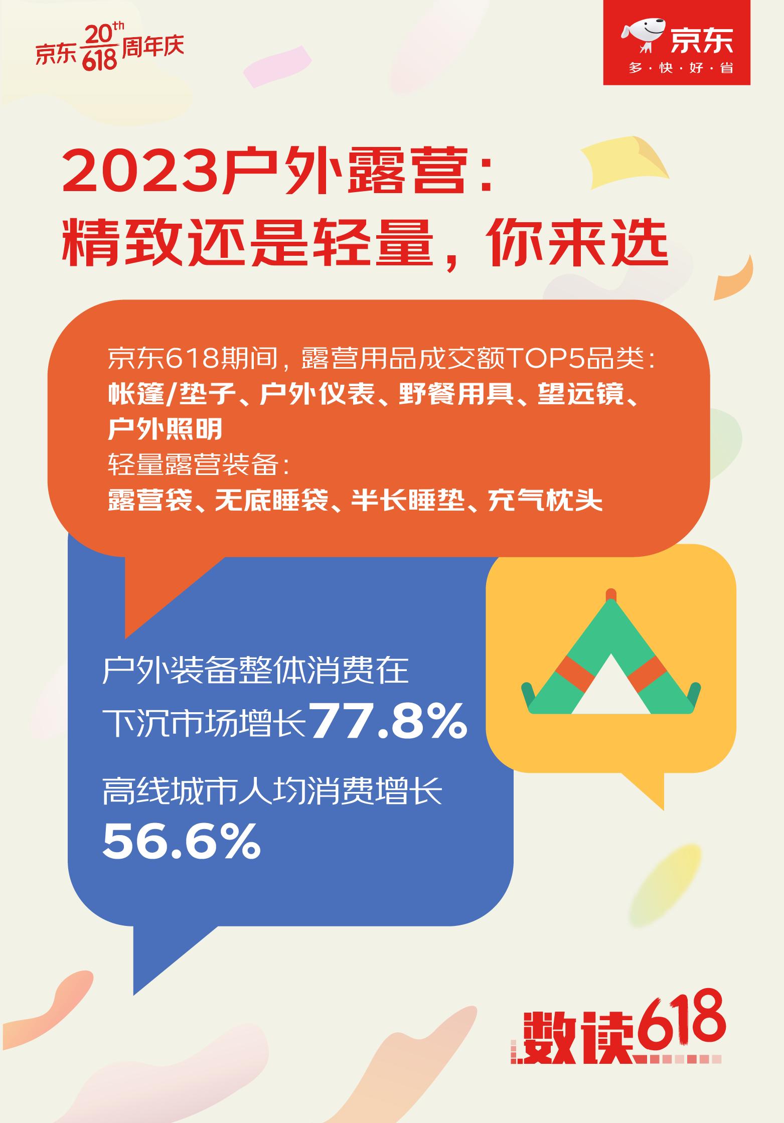 相比普通搭個帳篷看風(fēng)景,小黑玩的精致露營更講究儀式感和社交屬性,同時又是戶外場景,因而又衍生出“露營+N”等多種上個性化玩法,也帶動了更多關(guān)聯(lián)產(chǎn)品的火熱。從京東618數(shù)據(jù)銷售來看,基礎(chǔ)設(shè)備如帳篷等依然保持增長,但需求增長更快的是專業(yè)化、細(xì)分化設(shè)備。