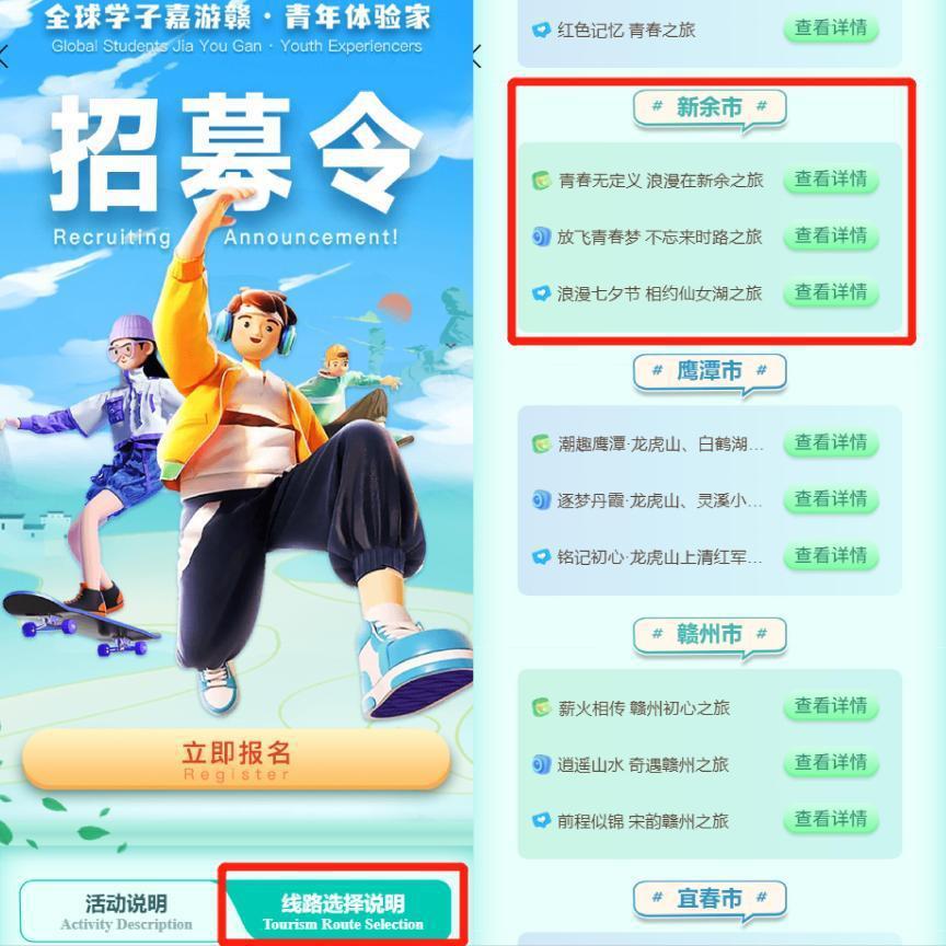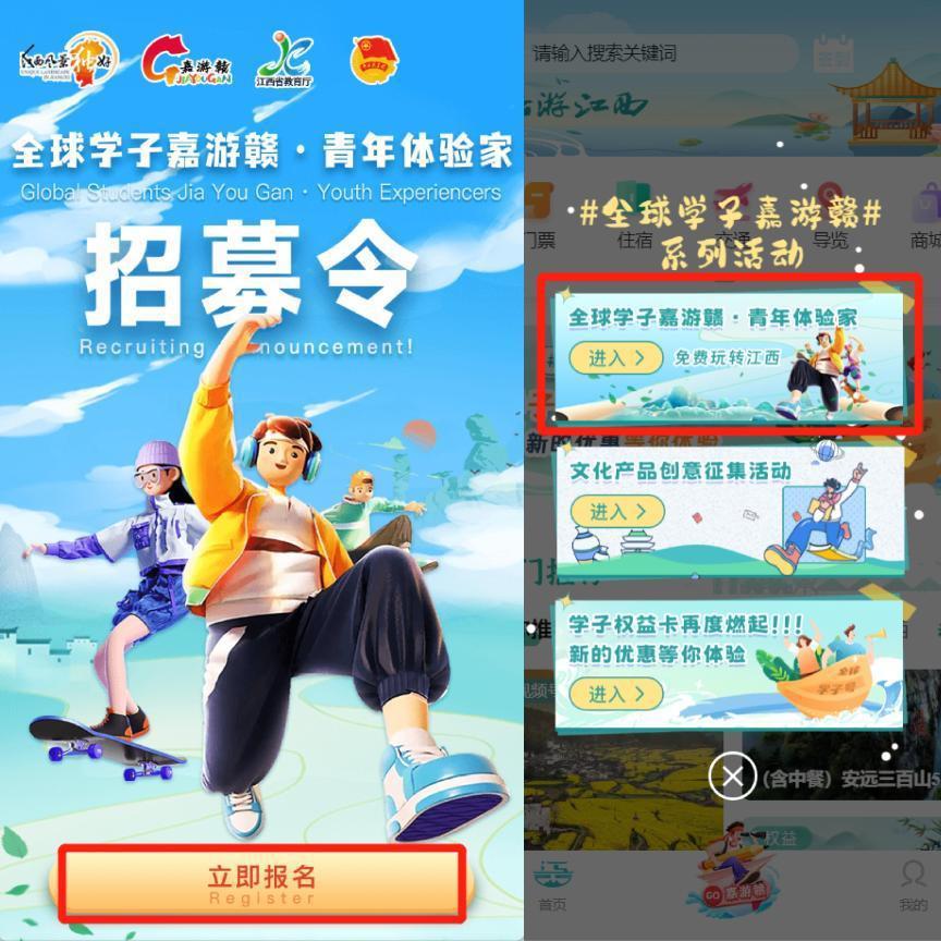 1.所有報名者均可享受各地優(yōu)惠政策,各地將從報名者中選擇邀請“嘉游贛·青年體驗家”。