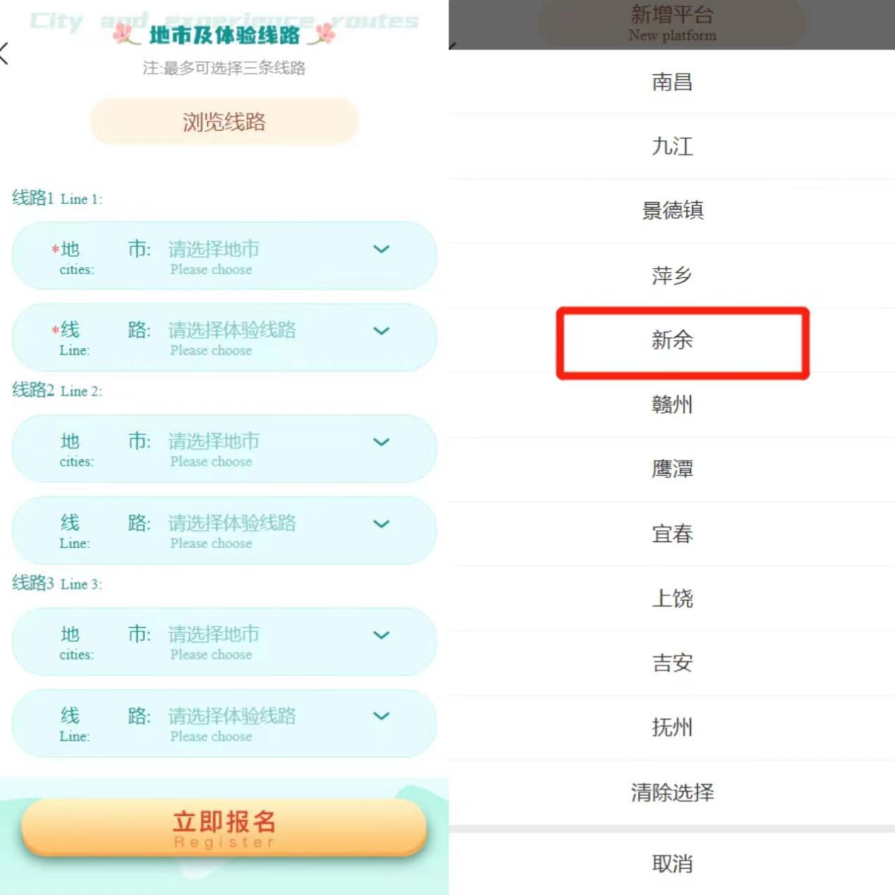 填寫信息 選擇新余