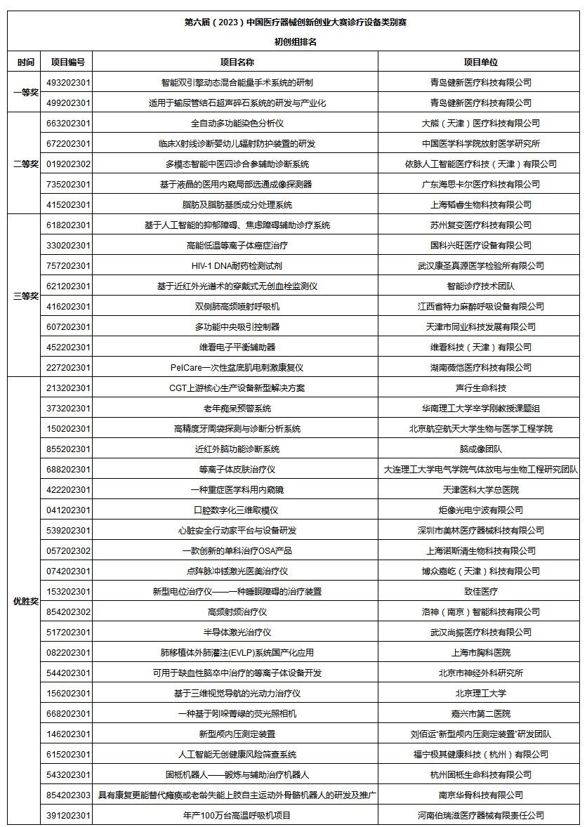 診療設備類別賽初創(chuàng)組最終評選出一等獎2個,二等獎5個,三等獎8個,優(yōu)勝獎21個。