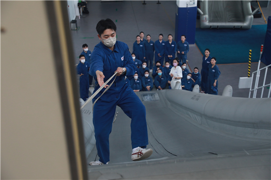 連日來,位于上海市青浦區(qū)、承擔(dān)空勤隊伍培訓(xùn)業(yè)務(wù)的東航研發(fā)中心一片繁忙。無論周一到周五還是周末,實操訓(xùn)練教學(xué)區(qū)域里,口令呼叫聲、設(shè)備運轉(zhuǎn)聲、水上區(qū)域?qū)W員的跳水聲……始終不絕于耳。在6月,東航研發(fā)中心的周末訓(xùn)練場次全部排滿,并加開了下午6點到晚上9點的培訓(xùn)班。來自東航研發(fā)中心的信息顯示,東航乘務(wù)新員的訓(xùn)練周期約66個工作日,通過利用周末時間、優(yōu)化培訓(xùn)效率的安排,當(dāng)前的新乘學(xué)員大多將在7月中旬結(jié)業(yè),完成初始訓(xùn)練的學(xué)員隨后將在航班旺季加入帶飛訓(xùn)練,預(yù)計最早能在8月獨立保障航班。乘務(wù)新員們也都期待著早日結(jié)業(yè)、飛向藍天的那一天。