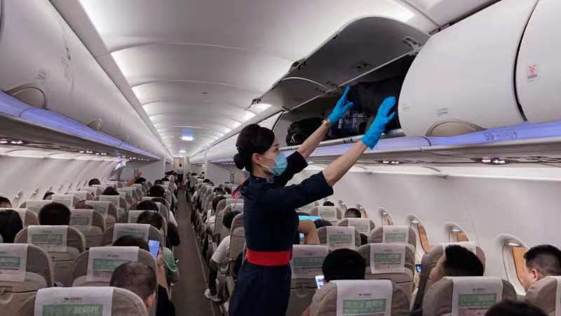 暑運(yùn)期間最大的特點(diǎn)就是客座率高,東航近期日均客座率都在80%左右;此外就是天氣復(fù)雜多變。相較于平日,在航前準(zhǔn)備過程中,金智音和乘務(wù)組們近期會格外關(guān)注目的地天氣情況、客座率、旅客構(gòu)成,特別是行李托運(yùn)情況等?!翱妥噬蟻砹?#xff0c;上機(jī)的行李自然就多了。為了妥善放置旅客的行李,我們一方面會提前在保障群里同地面緊密溝通監(jiān)控行李數(shù)量,一方面也會在航前準(zhǔn)備會上對乘務(wù)員們擺放行李提前進(jìn)行詳細(xì)部署?!苯鹬且粢矔跈C(jī)艙門口細(xì)心觀察,當(dāng)看到旅客行李箱較多,她還會以機(jī)上廣播的方式做好提醒,建議并幫助旅客將小型背包放置在座椅擋桿下方,確保每件行李都能放置妥善。