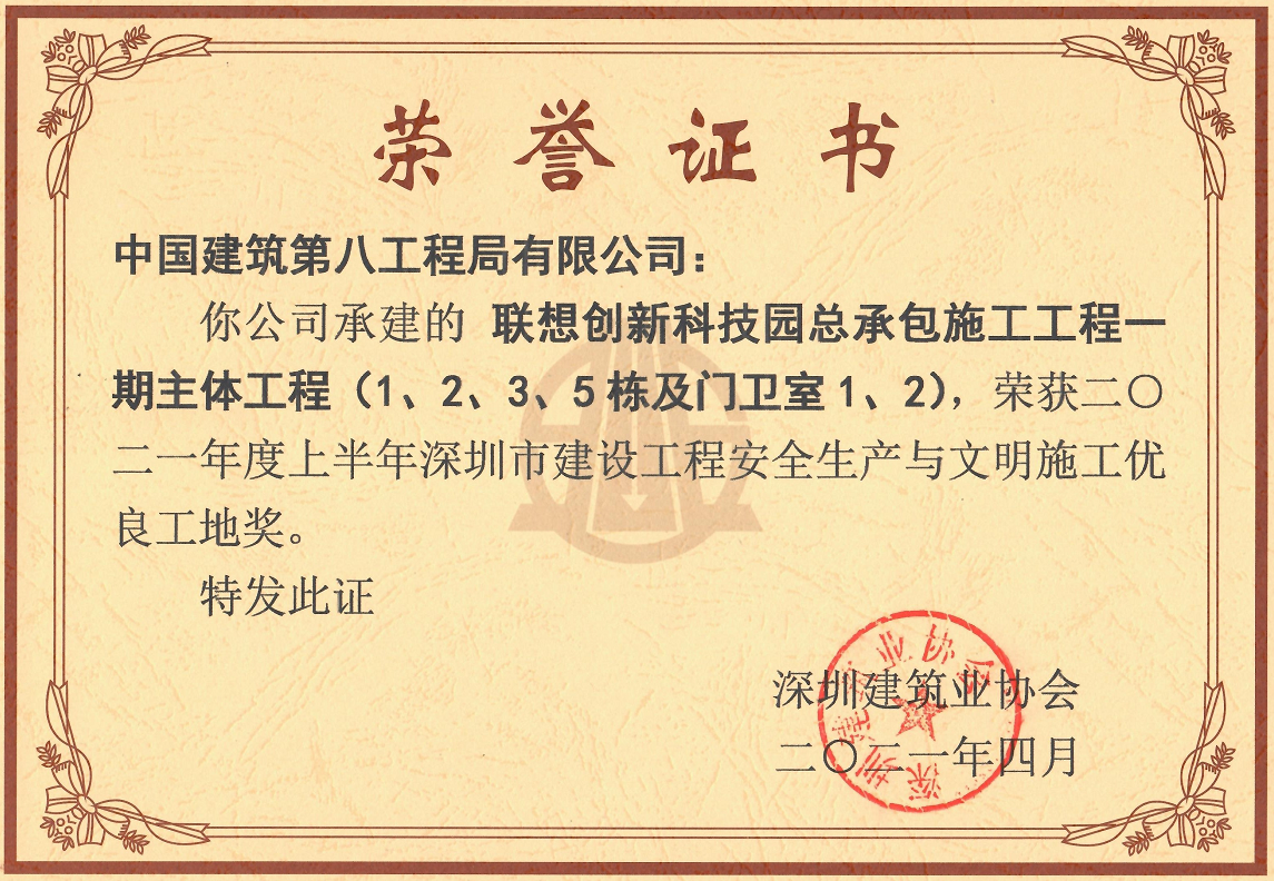 項目先后取得了深圳市優(yōu)質(zhì)結(jié)構(gòu)工程獎與深圳市建設(shè)工程安全生產(chǎn)及文明施工優(yōu)良工地等獎項,為業(yè)主交付滿意工程,高品質(zhì)完成項目建設(shè)任務(wù)。