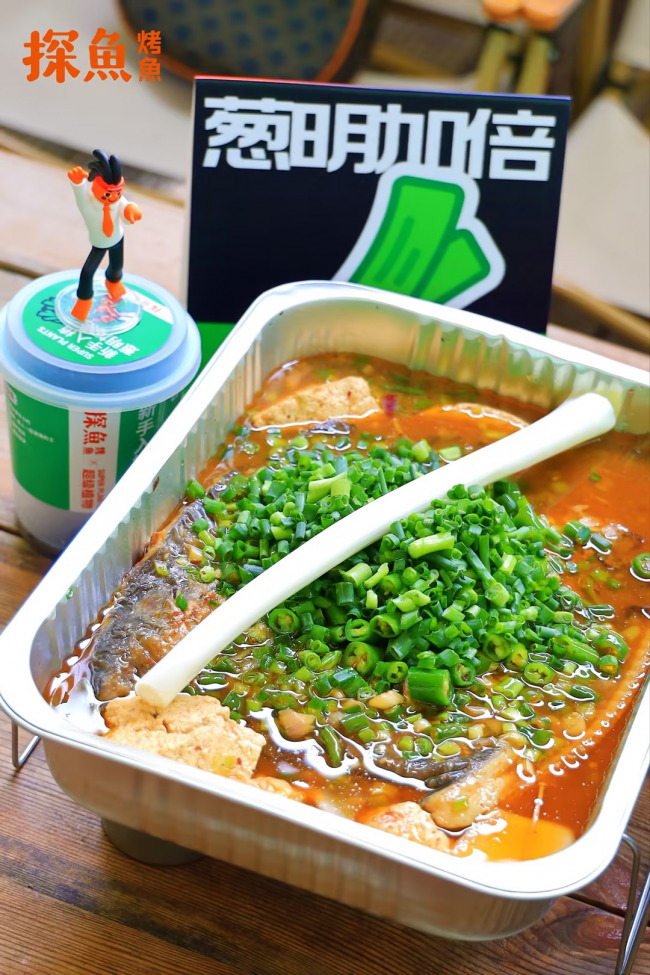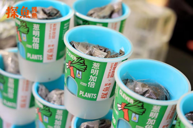 在產(chǎn)品研發(fā)上,探魚也充分考慮了顧客在感官、味覺(jué)、互動(dòng)等多方面的場(chǎng)景體驗(yàn),最新推出的“鮮青椒蔥蔥烤魚”就充分體現(xiàn)了這一點(diǎn)。鮮青椒蔥蔥烤魚在創(chuàng)新理念上,是探魚招牌口味“鮮青椒爽麻烤魚”口味的味型升級(jí),在藤椒口味的基礎(chǔ)上增加時(shí)令性的蔥香風(fēng)味,一經(jīng)推出,就頗受大眾喜愛(ài)。據(jù)悉,新品上市7天,已經(jīng)比去年同期上新的烤魚銷量上漲105%。在產(chǎn)品呈現(xiàn)上,新品上餐時(shí)配上一整棵鮮甜大蔥,然后由服務(wù)人員現(xiàn)場(chǎng)進(jìn)行“剪蔥儀式”,將蔥段下入鍋內(nèi),提味增香,同時(shí)為消費(fèi)者營(yíng)造一種新奇特的體驗(yàn)感。除此之外,探魚借勢(shì)本次上新,與最近大熱的植物品牌“超級(jí)植物公司”聯(lián)名推出可以種出小蔥的“蔥明種子卡”,不僅深化蔥的產(chǎn)品主題,還收獲了目標(biāo)客群“打工人”的情感共鳴。