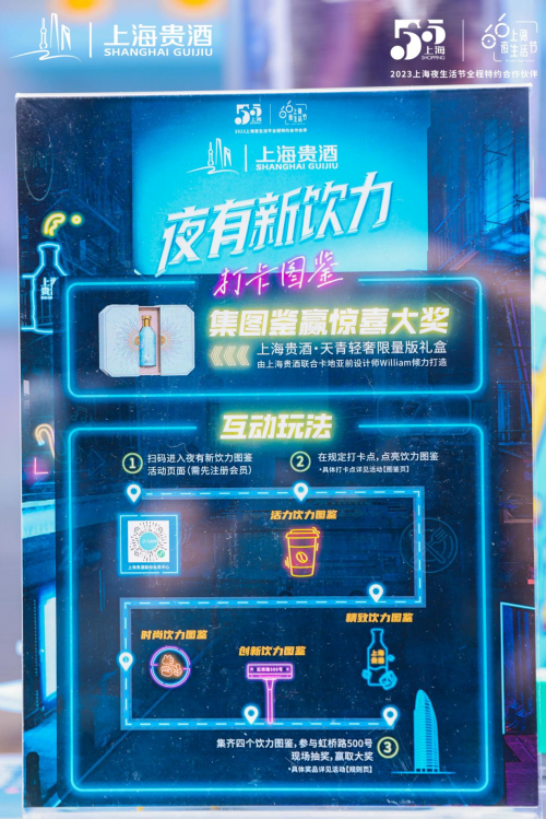 “2023上海夜生活節(jié)”正如火如荼地進(jìn)行,上海貴酒營造創(chuàng)新消費體驗,撬動消費活力,打造了貫穿整個6月“夜有新飲力”主題活動,攜手滬上高端餐飲及深受年輕消費者青睞的網(wǎng)紅餐廳發(fā)起全城總動員,創(chuàng)造“餐+酒+娛”場景融合新模式 ,形成線上線下互動營銷、休閑娛樂于一體的創(chuàng)新消費場景,助力上海點亮城市夜經(jīng)濟(jì)。