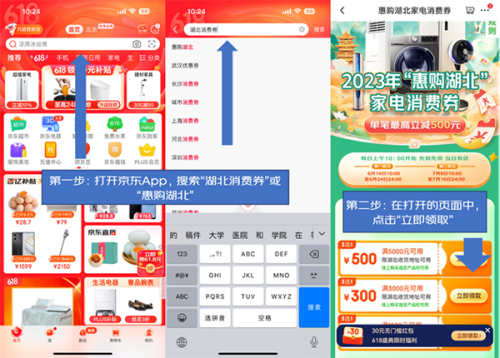為進一步增強消費市場活力,湖北省面向全省消費者發(fā)放2023“惠購湖北”家電消費券。只要實時定位在湖北且收貨地址為湖北的用戶,均可通過京東APP領(lǐng)取滿5000元減500元、滿3000元減300元、滿1000元減100元消費券,單筆消費至高優(yōu)惠500元,3張消費券任選一張活動期間內(nèi)可享2次優(yōu)惠,購買家電家居產(chǎn)品更劃算!領(lǐng)取方式也很簡單,即日起至6月24日每日10點在京東APP首頁搜索“湖北消費券”即可進入會場。