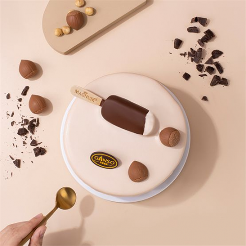 意式榛子巧克力味元夢絲巧冰淇淋蛋糕盡展?jié)庥麸L(fēng)情,在奶油淋面上是夢龍標(biāo)志性的香草巧克力口味雪糕和仿真立體榛子裝飾插件,內(nèi)里是土耳其進口榛子醬制成的榛子口味冰淇淋和進口可可制成的巧克力口味冰淇淋,再配上酥脆巴旦木,層層香脆絲滑迸發(fā)多重驚喜口感。這款冰淇淋蛋糕上市后,以無限創(chuàng)意和濃郁風(fēng)味圈粉無數(shù)年輕人,成為了盛夏消暑降溫的美味之選。