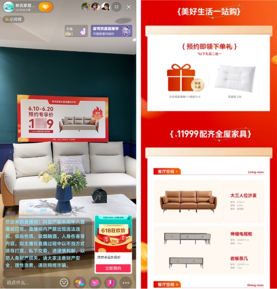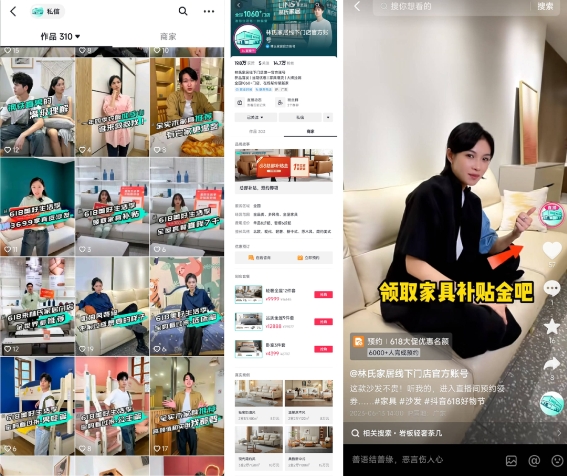 面對(duì)激烈的行業(yè)競(jìng)爭(zhēng),林氏家居提前一個(gè)月開始籌備大促活動(dòng),以抖音為線上核心陣地,特別推出"618美好生活季" 主題活動(dòng),參加抖音官方活動(dòng),獲得平臺(tái)多重曝光資源的加持。通過(guò)廣泛曝光,林氏家居得以持續(xù)搶占多圈層目標(biāo)用戶的注意力,提升品牌影響力。