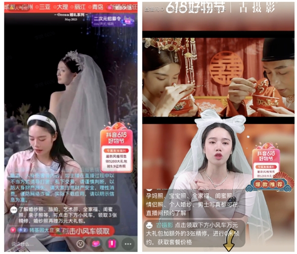 例如,某旅拍商家以618作為活動主題,固定禮服區(qū)走播,并通過話術(shù)凸顯618活動氛圍,打包618專屬禮包,激發(fā)了用戶參與活動的積極性。禮包有效期不限活動期,可用時間長達(dá)3年,增加了用戶的參與意愿,讓他們感受到活動的長期價值。