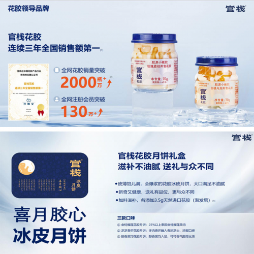 官棧極其重視此次展會,不僅帶來6大主力產(chǎn)品線,包括鮮燉花膠、即食花膠、輕食花膠、花膠料理、干花膠和季節(jié)限定禮盒;還帶來兩款重磅新品:港式花膠羹,以及首次對外展示的《溏心風(fēng)暴之家好月圓》IP聯(lián)名款花膠流心月餅禮盒,從而帶給采購商更多選擇。