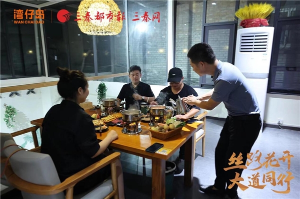 三秦都市報(bào)-三秦網(wǎng)訊(記者 范為民 白圩瓏 代澤均)玄關(guān)的木質(zhì)書架;墻上掛著的吉他;一樓的廳里還種著棵直徑約半米的玉蘭樹……8月9日晚,“絲路花開 大道同行”大型融媒體采訪行活動(dòng)南線采訪團(tuán)記者從南陽出發(fā),不到6公里的路程,不一會(huì)兒便來到了位于南陽市新華后街的這家“小清新”風(fēng)格的火鍋店。