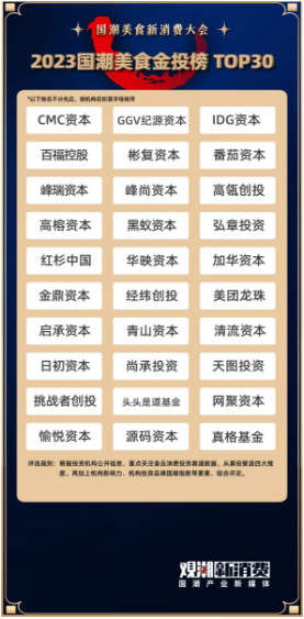 《2023國潮美食金投榜·TOP30》則用來表彰資本作為新消費潮流興起的預(yù)見者、助推器與價值捕手,在企業(yè)發(fā)展的道路上所發(fā)揮的舉足輕重的作用。