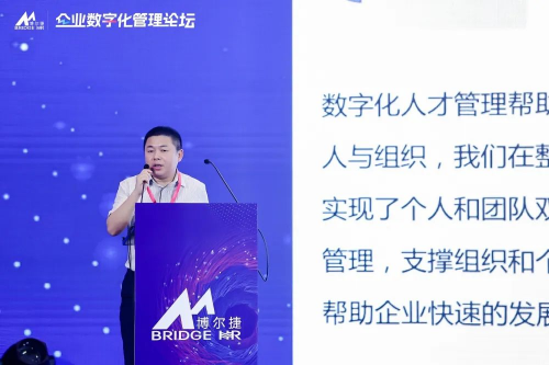 侯博士以2019年與中歐國際工商學(xué)院的忻榕教授、阿里巴巴產(chǎn)業(yè)互聯(lián)網(wǎng)中心主任陳威如教授歷經(jīng)兩年共同創(chuàng)作的《平臺化管理》一書作為理論指導(dǎo),以及多年人力資源行業(yè)經(jīng)驗的沉淀和敏銳的市場洞察,總結(jié)構(gòu)建平臺化企業(yè)的重要性,包括小前端、強中臺和穩(wěn)后臺的建設(shè)。侯博士介紹了平臺化管理的五化模型:能力數(shù)字化、關(guān)系數(shù)字化、績效顆粒化、結(jié)構(gòu)柔性化、以及文化利他化。侯博士分享了博爾捷集團的成功經(jīng)驗,鼓勵其他企業(yè)在探索和實踐中進行數(shù)字化轉(zhuǎn)型和組織變革,以實現(xiàn)平臺化管理。
