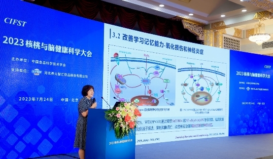 科技強國,腦力先行。核桃是全球四大堅果之一,我國核桃產(chǎn)量占據(jù)全球總產(chǎn)量的半壁江山,為剖析核桃與腦健康科學的關(guān)系,挖掘核桃功效組分與營養(yǎng)健康科學內(nèi)涵,共同推進我國植物蛋白飲料產(chǎn)業(yè)的高質(zhì)量發(fā)展,7月24日,由中國食品科學技術(shù)學會主辦,河北養(yǎng)元智匯飲品股份有限公司支持的2023核桃與腦健康科學大會在北京召開。與會專家表示,研發(fā)核桃肽等食源性小分子生物活性短肽,具有重要科學意義和應用價值。對于我國產(chǎn)量在全球占據(jù)半壁江山的核桃,食品科技界和產(chǎn)業(yè)界不僅要實現(xiàn)從“砸核桃”到“喝核桃”的食用方式創(chuàng)新,更要探明其功效組分與營養(yǎng)健康的科技內(nèi)涵,助力健康中國。