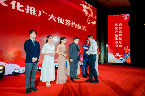 在發(fā)布會(huì)期間,小角樓與多方合力,不斷拓展“喜事喜宴喜酒”的多維引領(lǐng)覆蓋面,更與河南廣播電視臺(tái)主持團(tuán)隊(duì)“六六大順主持團(tuán)”正式簽約,將宴會(huì)氣氛推向高潮。