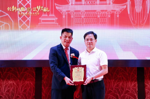 南安市委統(tǒng)戰(zhàn)部副部長、市工商聯(lián)黨組書記黃保林為執(zhí)行會(huì)長兼秘書長戴金星授牌