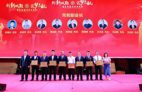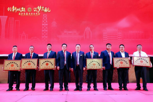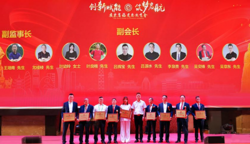 會(huì)長徐澄清、理事長顏龍坤為廣東省福建南安商會(huì)商務(wù)部徐阿團(tuán)、宣傳部李其華、慈善部李偉斌、法律維權(quán)部傅景松、投融部洪天生、會(huì)員部徐裕燦、法律顧問周理想授牌