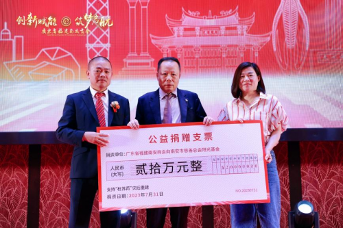 就職典禮上,廣東省福建南安商會(huì)積極響應(yīng)南安市委統(tǒng)戰(zhàn)部、市工商聯(lián)、市慈善總會(huì)號召,向南安市同心陽光基金捐贈(zèng)人民幣20萬元,用于助力家鄉(xiāng)“杜蘇芮”臺(tái)風(fēng)災(zāi)后重建工作。