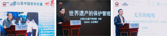 遺產(chǎn)地保護(hù)與可持續(xù)發(fā)展是一個(gè)重要的領(lǐng)域,這些遺產(chǎn)地不僅代表了人類的智慧和創(chuàng)造,更是世人與過去相連的紐帶,也是留給后人的寶貴財(cái)富。在上午學(xué)術(shù)活動現(xiàn)場,泰山管委會原副主任、研究館員呂繼祥,中國文化遺產(chǎn)研究院原副總工程師沈陽,復(fù)旦大學(xué)國土與文化資源研究中心主任、博士生導(dǎo)師杜曉帆,3位專家進(jìn)行了主旨發(fā)言,為做好泰山的保護(hù)、研究和利用建言獻(xiàn)策。
