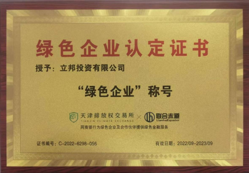 立邦獲得綠色企業(yè)認定證書