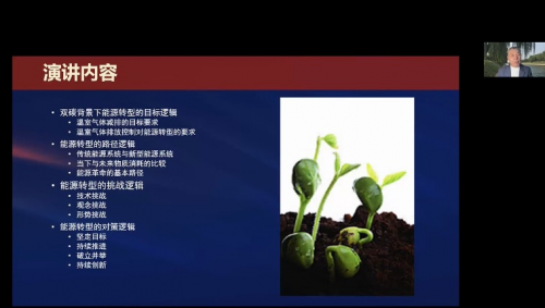 中國(guó)能源研究會(huì)常務(wù)理事、紅杉中國(guó)投資合伙人李俊峰通過(guò)視頻演講的形式,從雙碳背景下能源轉(zhuǎn)型的目標(biāo)邏輯、路徑邏輯、挑戰(zhàn)邏輯、對(duì)策邏輯等多個(gè)方面著手,分析了《能源綠色轉(zhuǎn)型的邏輯》。