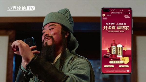 活動(dòng)以開(kāi)蓋掃碼抽獎(jiǎng)為主要形式,消費(fèi)者購(gòu)買(mǎi)小糊涂仙指定酒品,開(kāi)蓋掃碼即可抽取49999元購(gòu)車(chē)基金、50g虎年傳世金條、2g足金金條及海量微信現(xiàn)金紅包等。“開(kāi)金喜 福到家”活動(dòng)在線(xiàn)下掃碼開(kāi)獎(jiǎng),回饋消費(fèi)者的同時(shí),小糊涂仙于雙微平臺(tái)推出social短片《酒煮三國(guó)》,以三國(guó)時(shí)代為背景,結(jié)合產(chǎn)品人群與活動(dòng)賣(mài)點(diǎn),巧妙地將“開(kāi)金喜 福到家”活動(dòng)的核心內(nèi)容傳遞給消費(fèi)者,用古風(fēng)爆梗玩出活動(dòng)新花樣,從滿(mǎn)屏的春節(jié)營(yíng)銷(xiāo)熱潮中突圍。