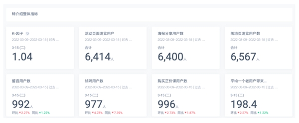 新用戶轉(zhuǎn)化:舉個(gè)例子,用戶先留咨,然后銷售主動(dòng)添加好友私聊約試聽(tīng)課,試聽(tīng)課后推正價(jià)課購(gòu)買。不同活動(dòng)對(duì)新用戶的轉(zhuǎn)化程度要求是不一樣的。