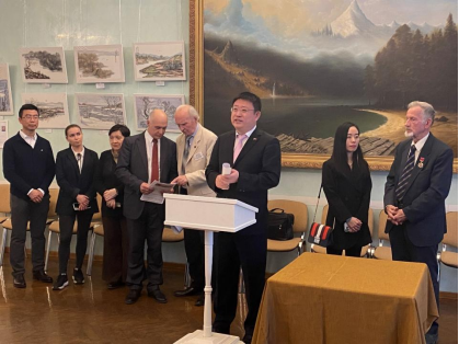 中俄人文合作發(fā)展中心理事長尹斌先生在發(fā)言中談到:“藝術家劉子輿先生在莫斯科生活多年,在此期間,他給很多俄羅斯人傳授中國的水墨,為發(fā)揚中國文化作出了巨大貢獻?!?/p>