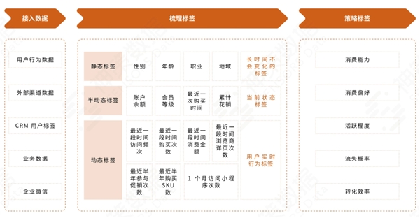 4、消費(fèi)者全生命周期運(yùn)營(yíng)的基礎(chǔ)是構(gòu)建動(dòng)靜結(jié)合的全域會(huì)員用戶(hù)標(biāo)簽體系,顆粒度越細(xì),越容易產(chǎn)生更好的落地效果。