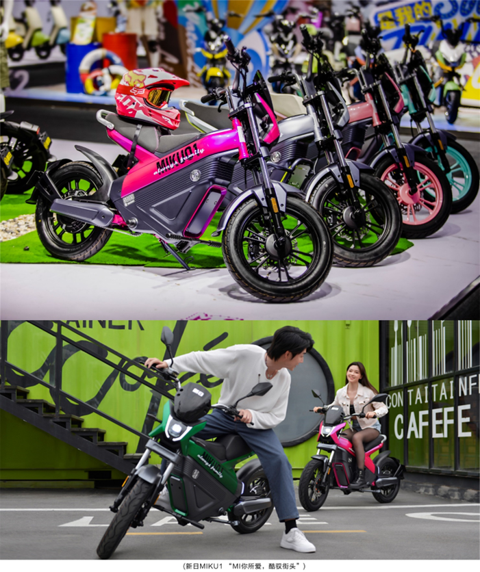 “MI你所愛 酷馭街頭”MIKU1:設(shè)計(jì)靈感來自于賽博朋克,極具未來感的機(jī)車外表,在“后現(xiàn)代迷幻美學(xué)”的賦能下,擁有了更加科幻的潮流美感,瞬間拉近與年輕人的溝通距離;