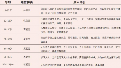 據(jù)了解,這8種覺(jué)囊括從新生到暮年的8個(gè)階段,每個(gè)階段根據(jù)人的身體發(fā)育需求、身體特征,結(jié)合所處年齡階段、社會(huì)環(huán)境等因素,來(lái)選擇不同的床墊,進(jìn)而滿足人在每個(gè)階段好好睡覺(jué)的需求。